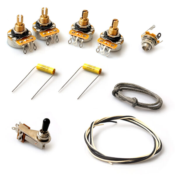 Designed for SG-style guitars, this version features premium CTS 500K pots, USA Mallory 150 capacitors, and professional-grade switching hardware. Braided shielded wire and vintage-style cloth push-back wire are included for a clean, traditional installation that meets the demands of high-end builds and restorations.